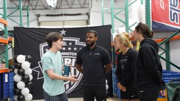 The Washington Spirit Players Impacting the Community! Soccer Distribution Day - a day dedicated to making sure every child has the gear that they need to play the best game they love. Impacting the Community.